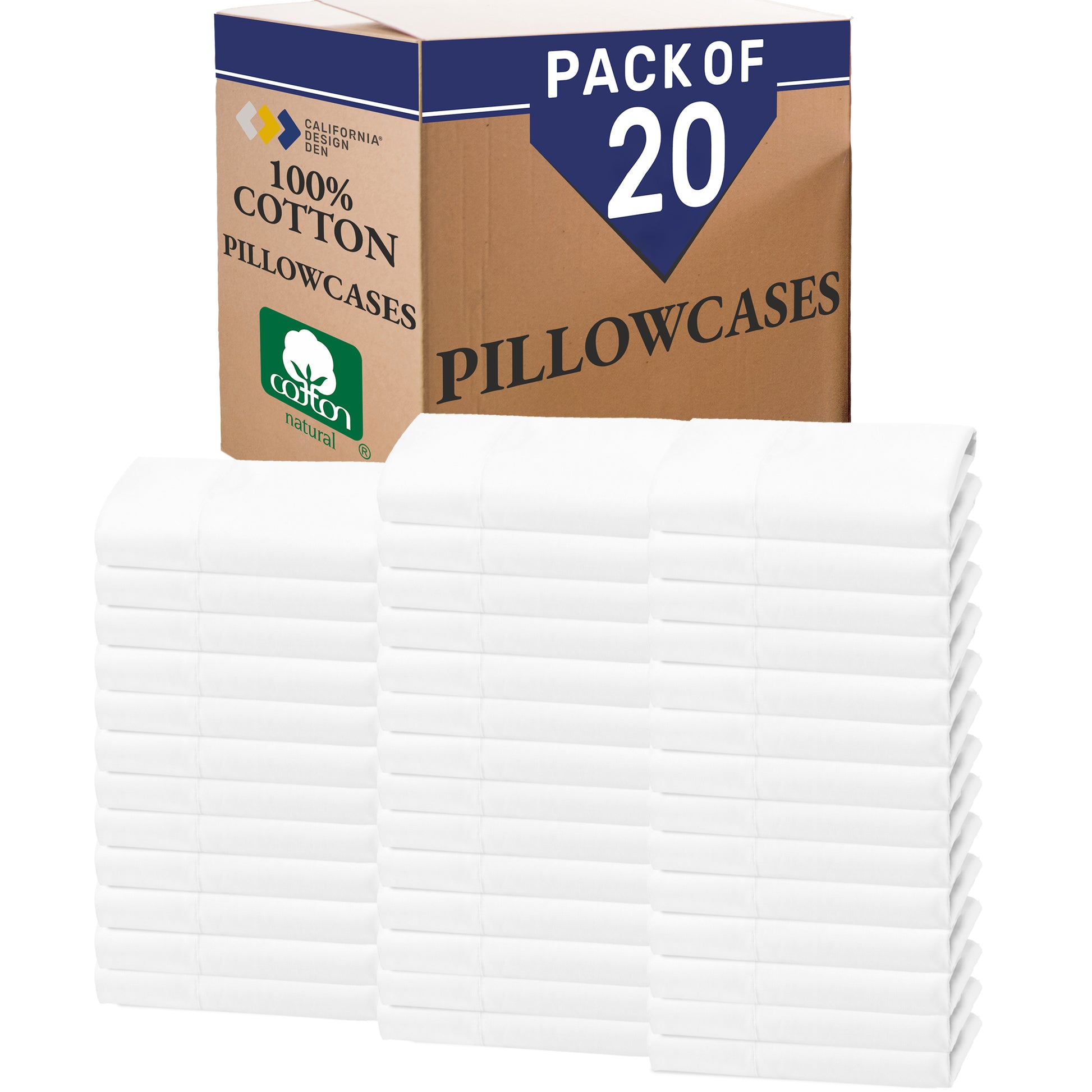 Bulk Pack of 20 Pillowcase Pairs (40 Pieces) - Mixed High Thread Count - Open Box - White