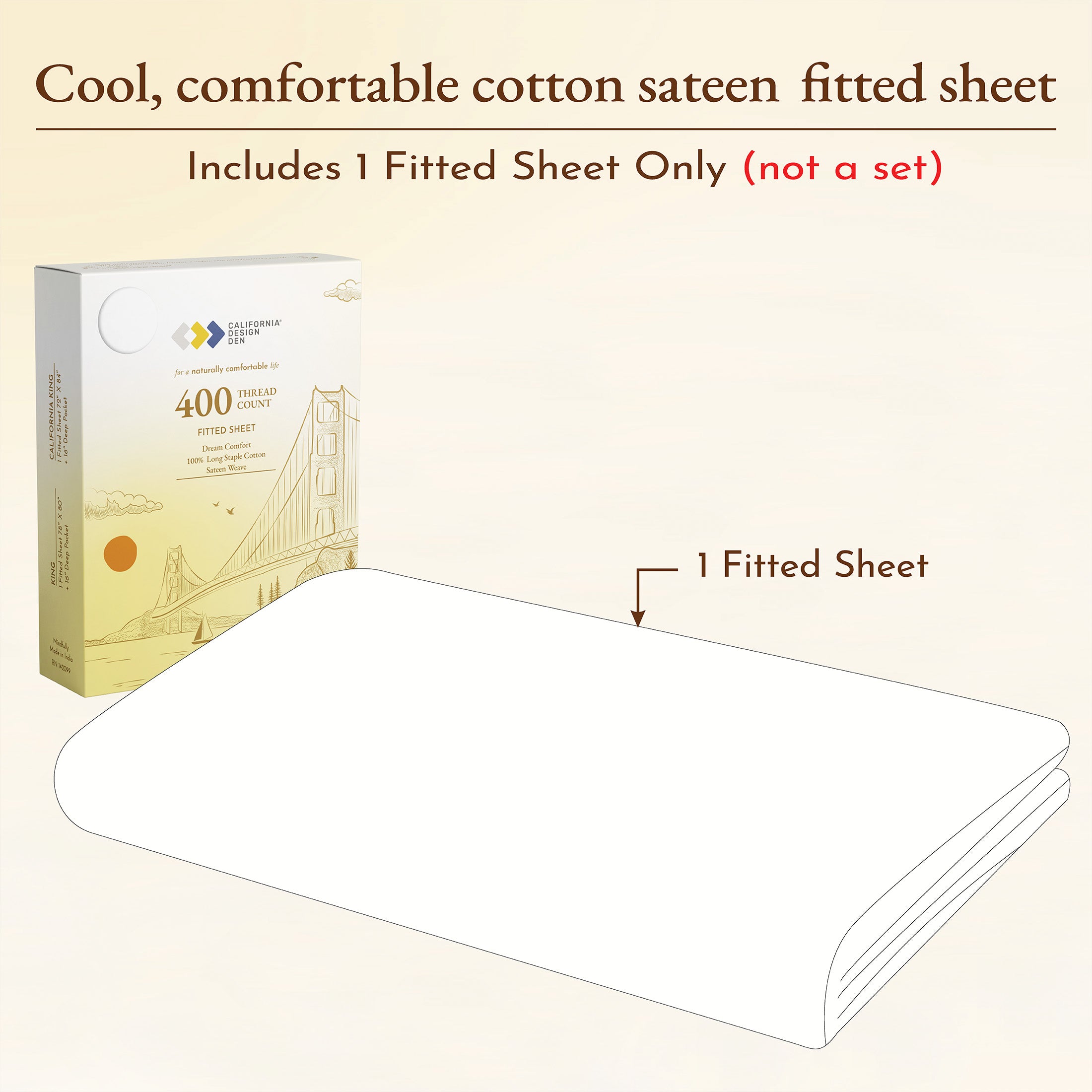 100% Long-staple Cotton, 400 Thread Count, Ivory (Pale Tone)
