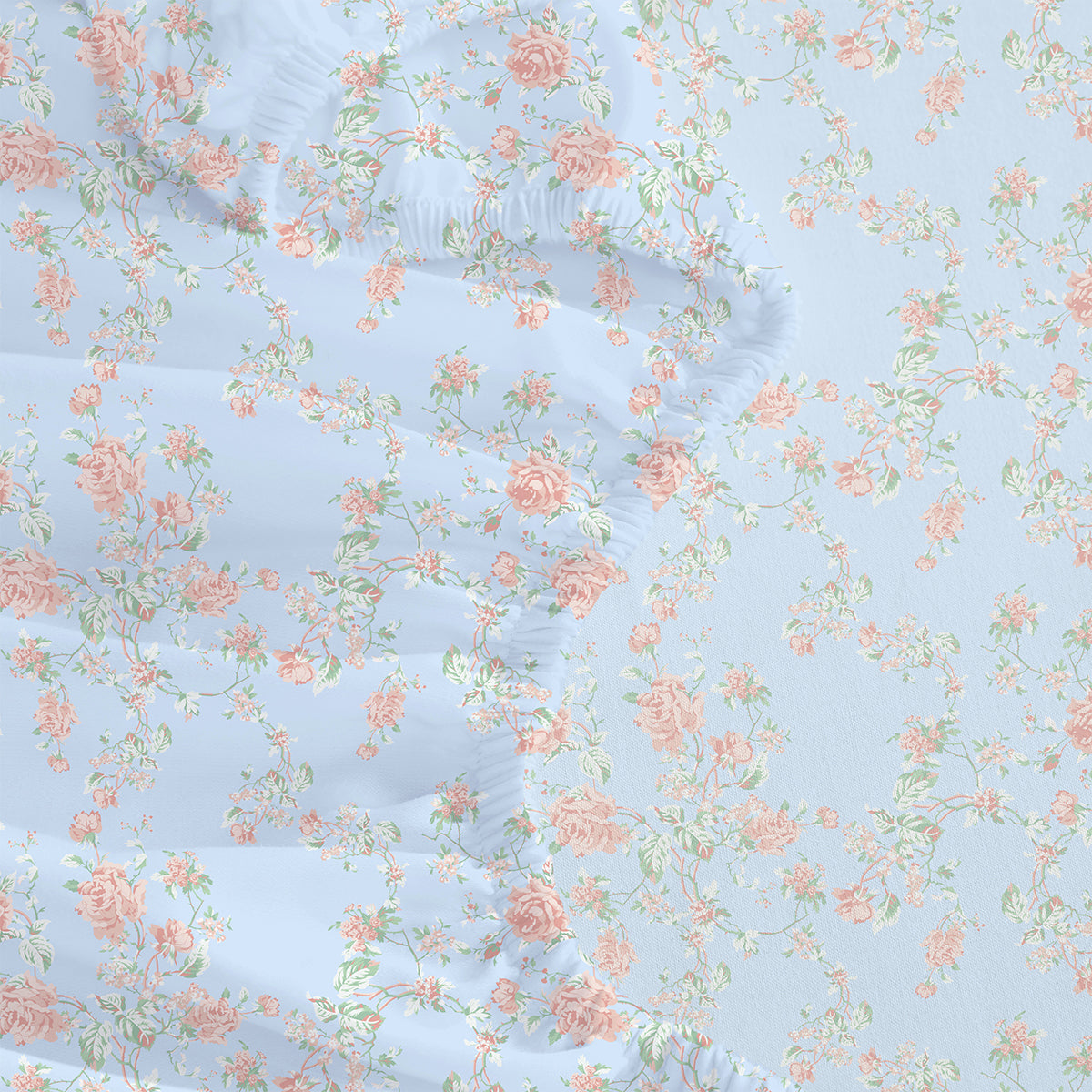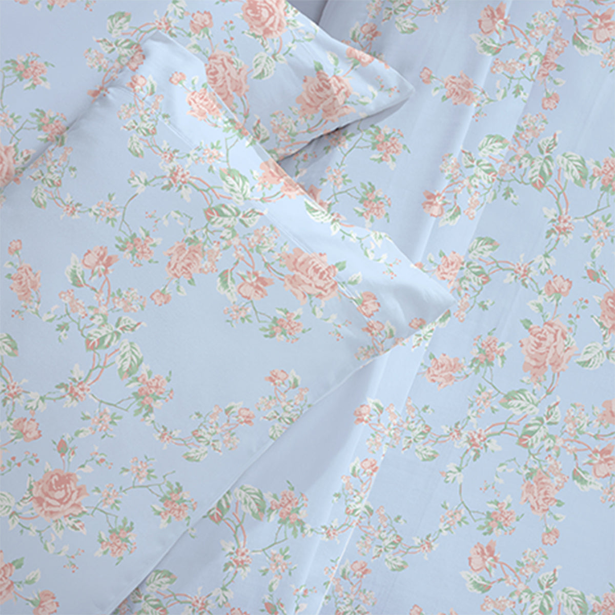 100% Long-staple Cotton, 400 Thread Count, Floral Blue/Pink Print