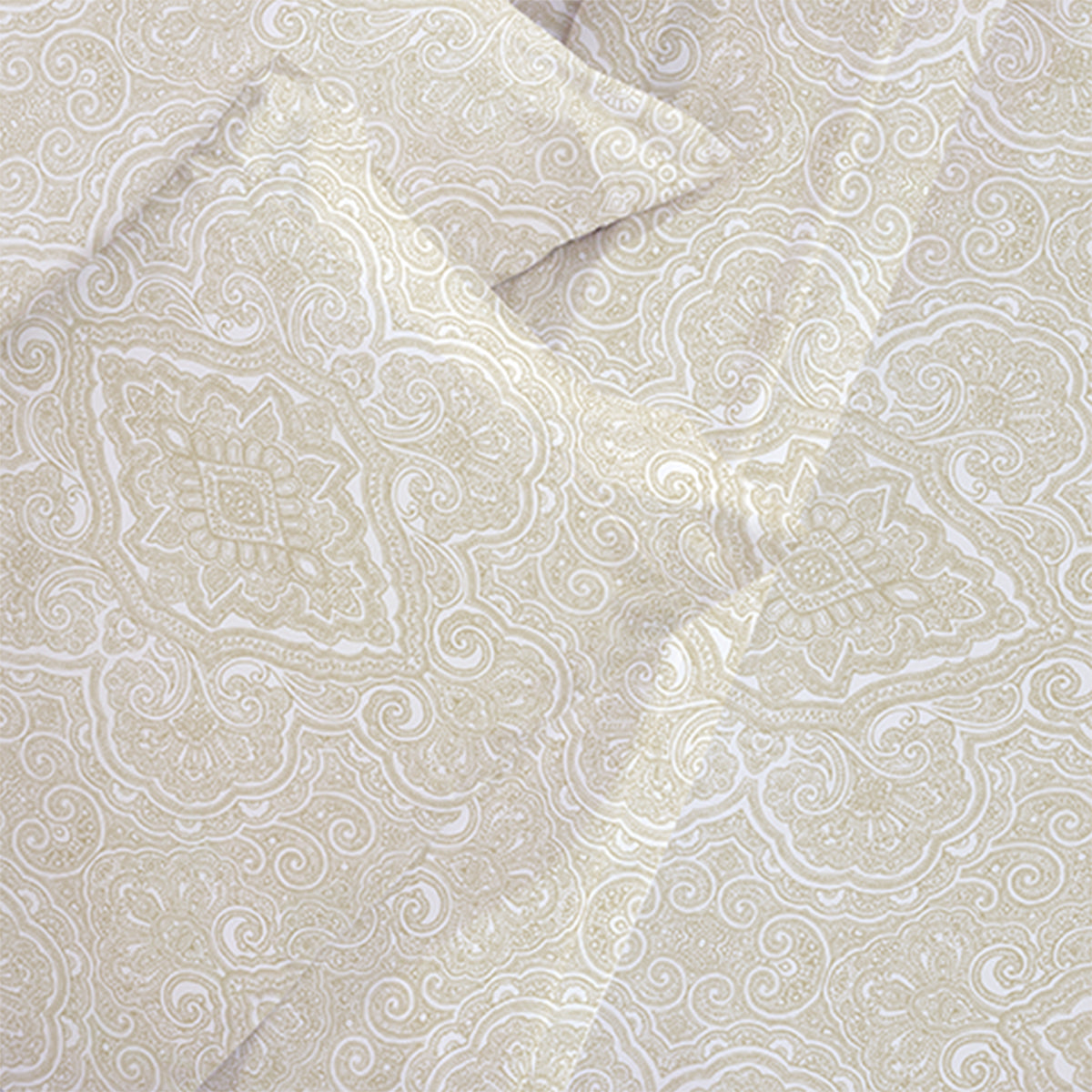 100% Long-staple Cotton, 400 Thread Count, Paisley Beige Print
