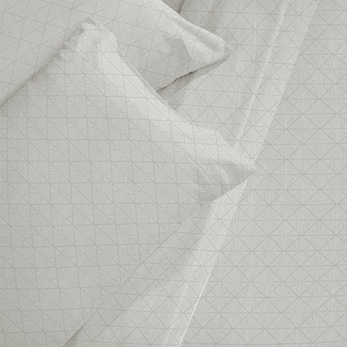 100% Long-staple Cotton, 400 Thread Count, Crosshatch Taupish- Sage Print