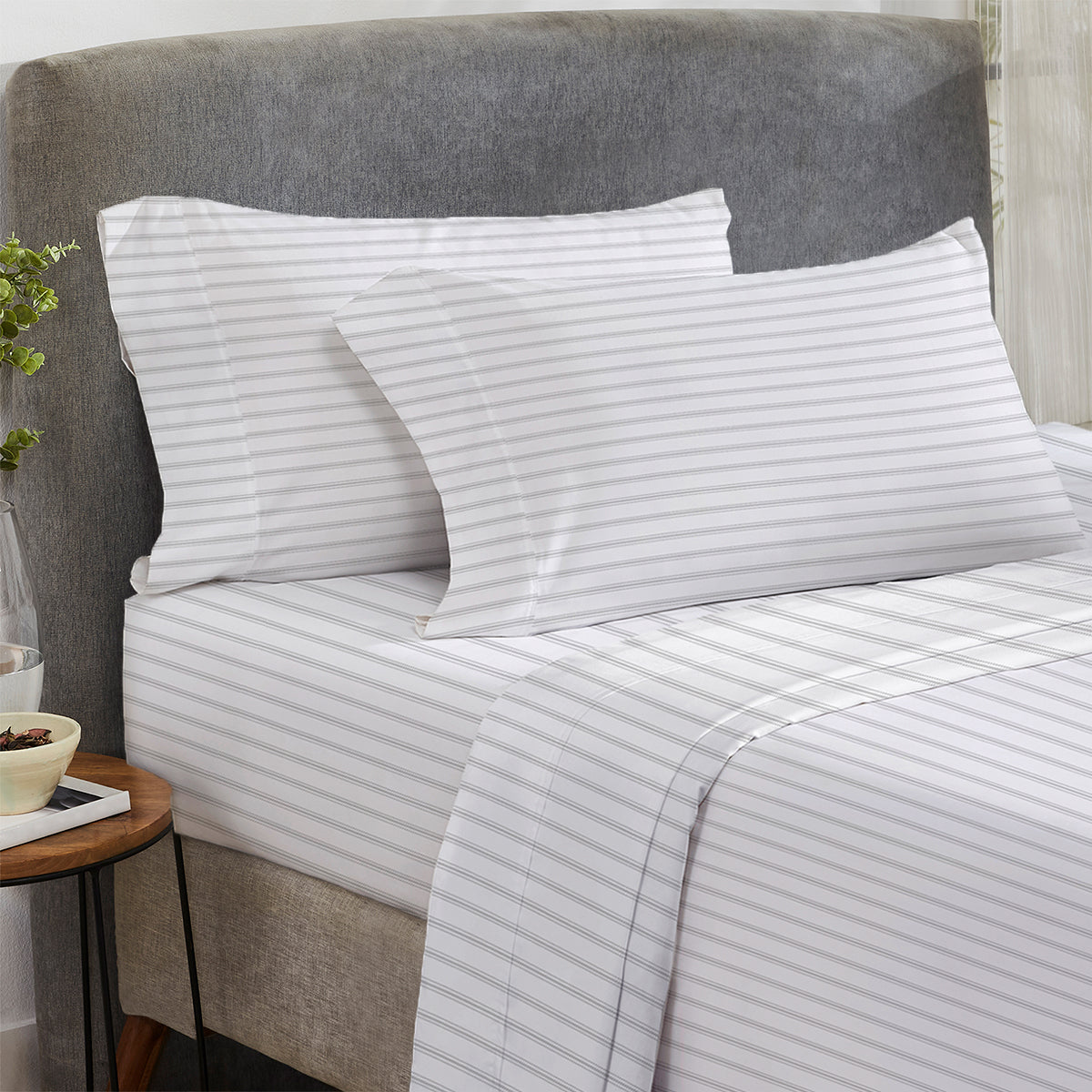 100% Long-staple Cotton, 600 Thread Count, Print - Ticking Stripe