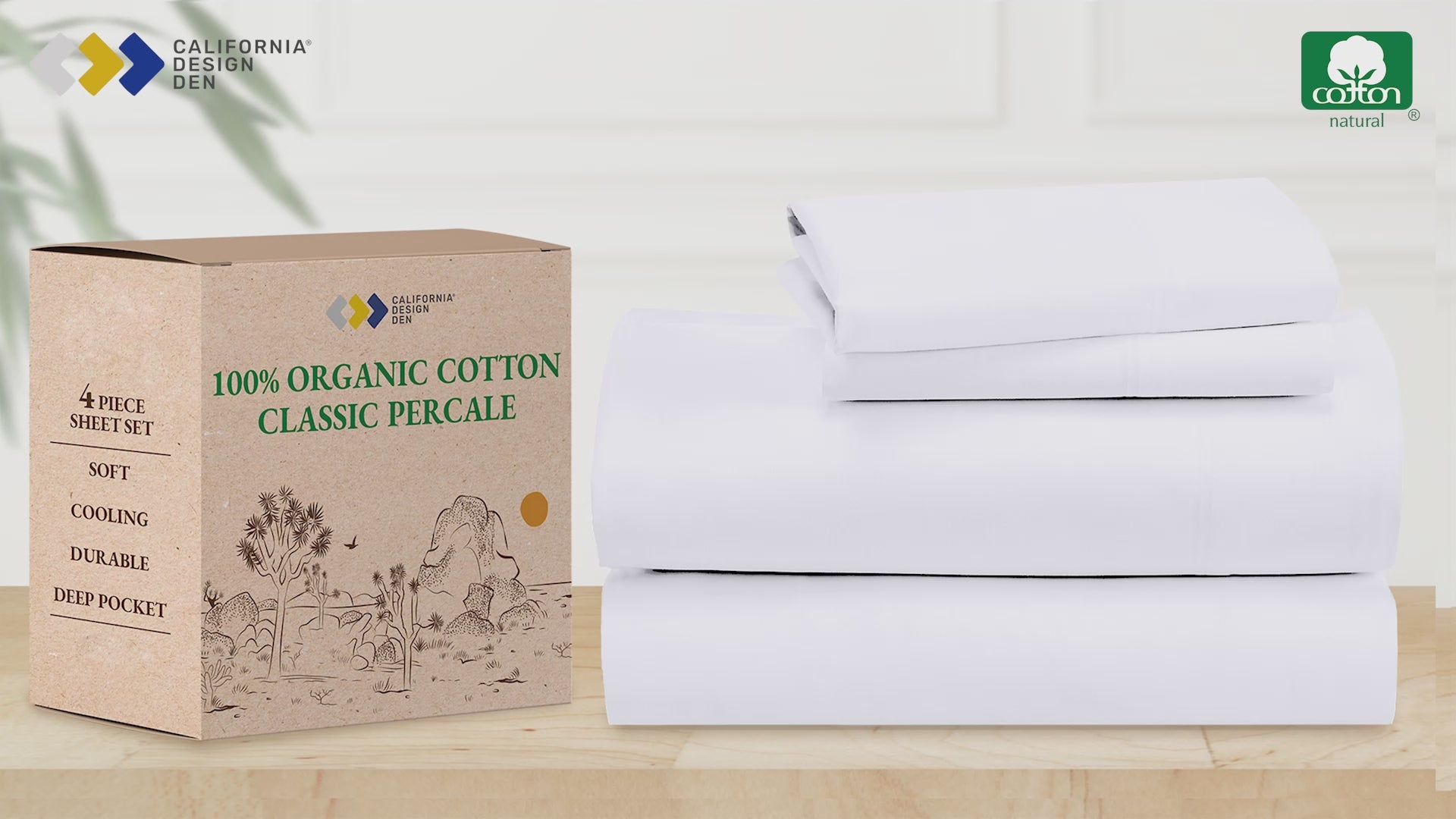 Designed with certified organic cotton, this percale features a crisp, breathable feel and a clean matte finish. Woven for a lightweight, refreshing hand, it brings natural comfort to warm nights and everyday use.